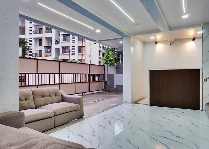 Elite Stays Pune hotel is approximately a 25-minute stroll from Tech Mahindra Ltd and features a terrace with outdoor dining areas.